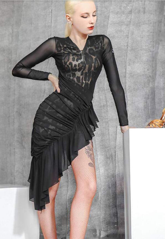 Asymmetric Black Leopard Latin Practice Wear | 667
