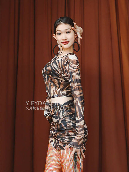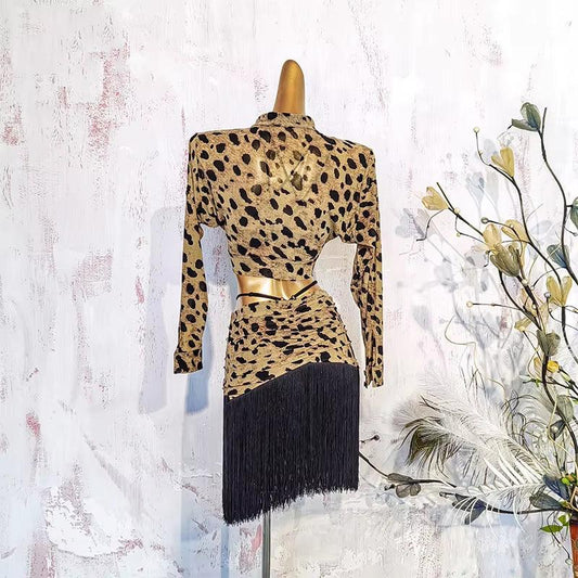 New Latin Dancewear Set - Leopard Blouse & Black Skirt | 683