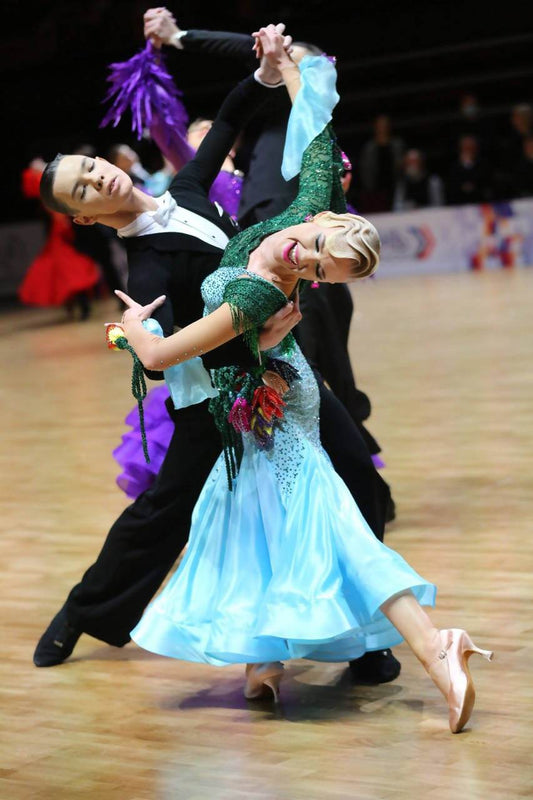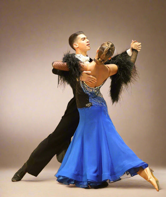 Blue Ballroom Dress with Feathers