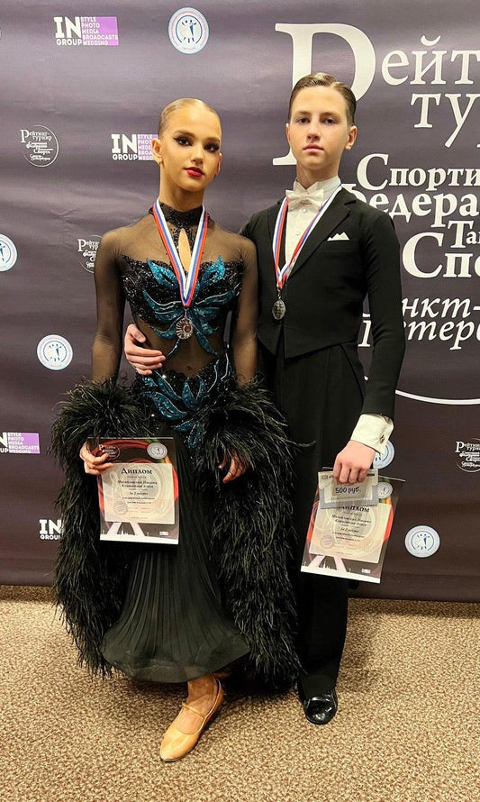 Black Ballroom Standard Dress | Exquisite Feathered Elegance
