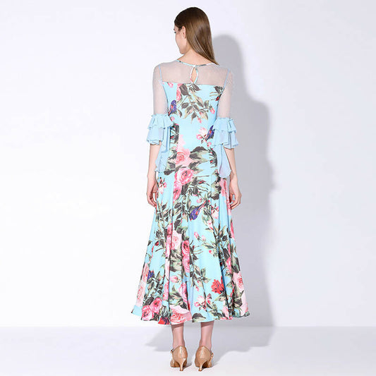 Blossom Motif Ballroom Dance Dress | Blue/Wine Red/Purple/Yellow | 880