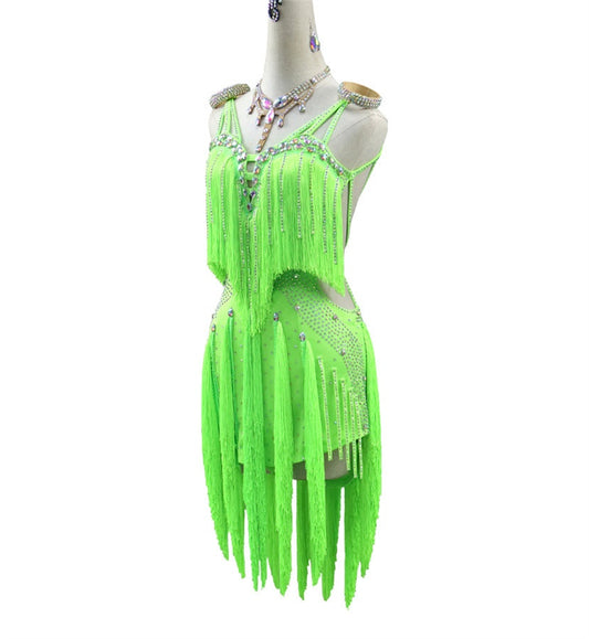 Step into the world of "Cheap Delights," where affordability meets elegance in our collection of custom-made latin dance dresses. Our dresses are designed to empower women on and off the dance floor, perfect for latin dancesport competitions, salsa performances, bachata shows, and all your favorite latino dances. Choose your favorite color to match your personality and add accessories to complete your look. With sparkling rhinestone decorations, our dresses are sure to make you shine. Dance with confidence and style without worrying about the cost with our "Cheap Delights" collection.