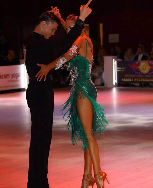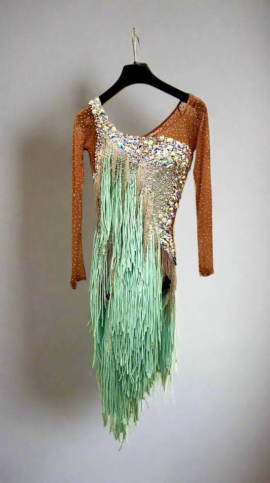 Green Vesa Latin Dress With Fringe