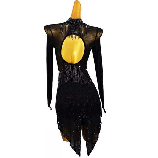 Black Mesh-Covered Latin Dress | LQ457