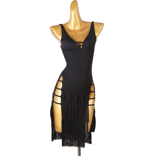Crisscross Fringed Latin Practice Dress | Black/Blue | W23A212