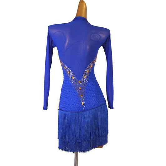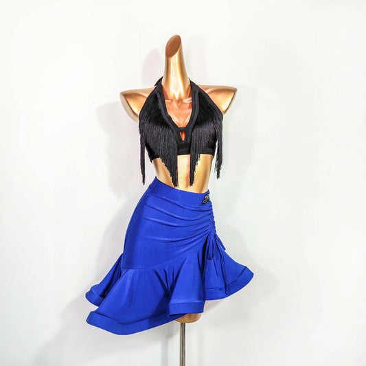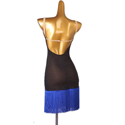 Crisscross Fringed Latin Practice Dress | Black/Blue | W23A212