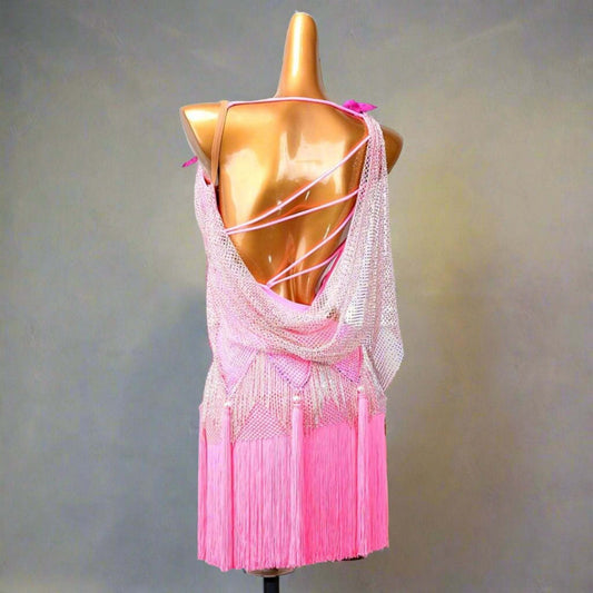 Drama in Motion: Blue & Pink Fringe Latin Dress