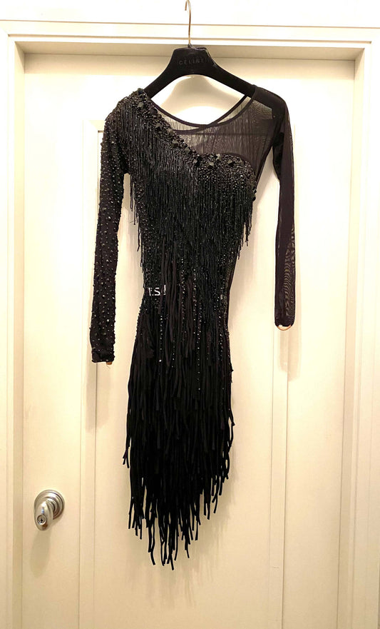 Vesa Black Latin Dress with Fringes