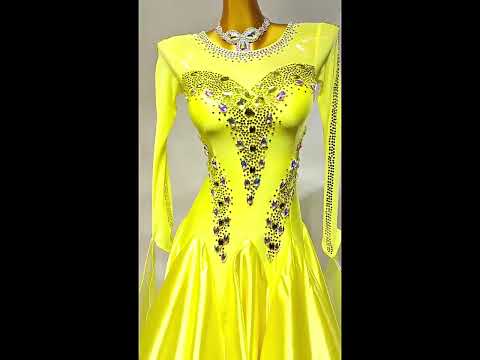 Radiate elegance in this custom-made ballroom dress, richly embellished with sparkling crystals. Featuring graceful long sleeves, a flowing full skirt, and a refined ombré finish for luminous stage presence.