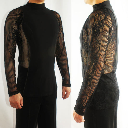 Fashionable Lace Dance Shirt | Black / White | K28