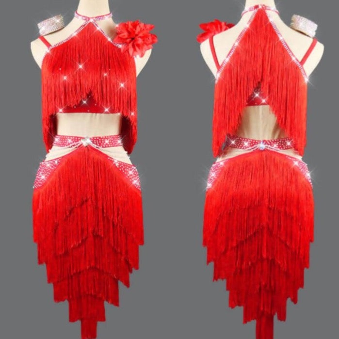 Get ready with our Duo of Dynamism Latin Set! Made to order and fully customizable, this rhythm set is designed to fit your body perfectly. Simply provide us with your measurements, and we'll create a stunning latin set that will highlight your every move. To ensure the best fit, we highly recommend customizing your set. Order now and receive a detailed measurement guide to help you through the process.