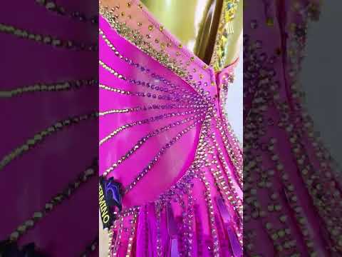 Exude captivating allure in this stunning gold and pink latin dance ensemble, embellished with dazzling stones, glistening sequins, and dynamic fringe detailing. The sleeveless silhouette guarantees unrestricted motion and striking sophistication, ideal for competitive latin performances and commanding center stage with confidence.