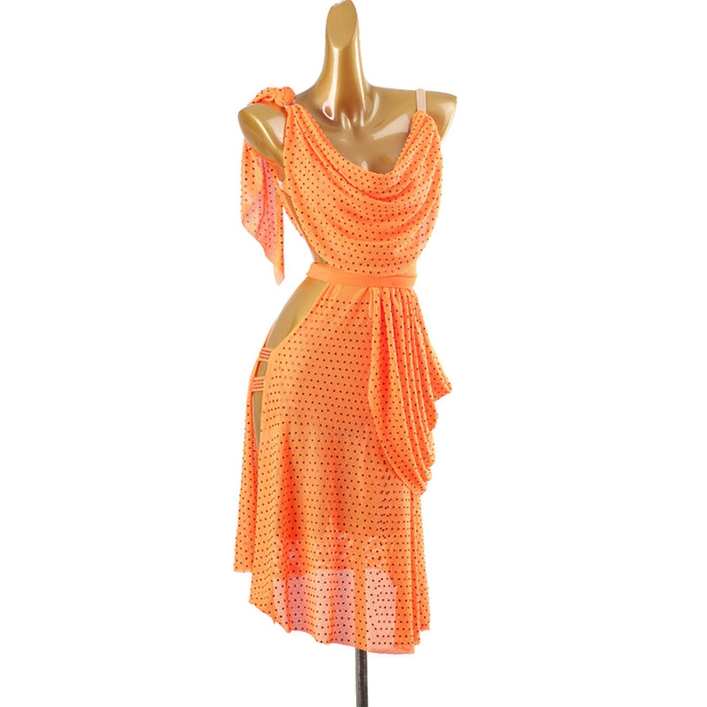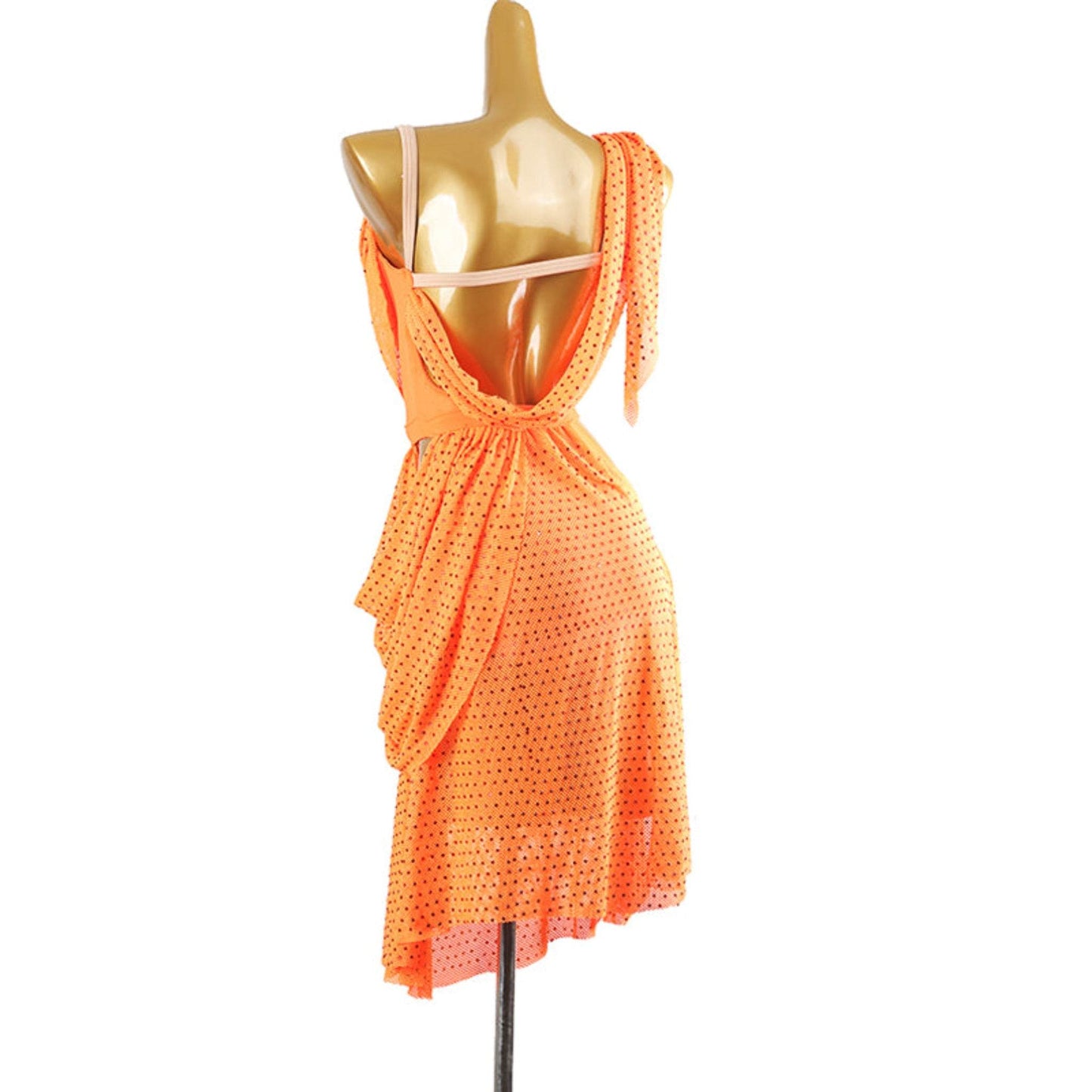 Dazzle on the dance floor in our new open-back, sleeveless, fully customizable latin dress, adorned with sparkling crystals. Available in wine red, light yellow, orange, royal blue, and purple, this dress combines elegance, comfort, and standout style. Perfect for elevating your latin dance routines, it offers a personalized touch for every dancer.