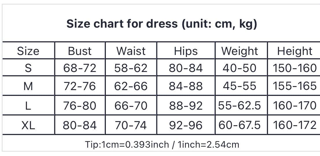 | Size chart for dress (unit: cm, kgs) | |||||
