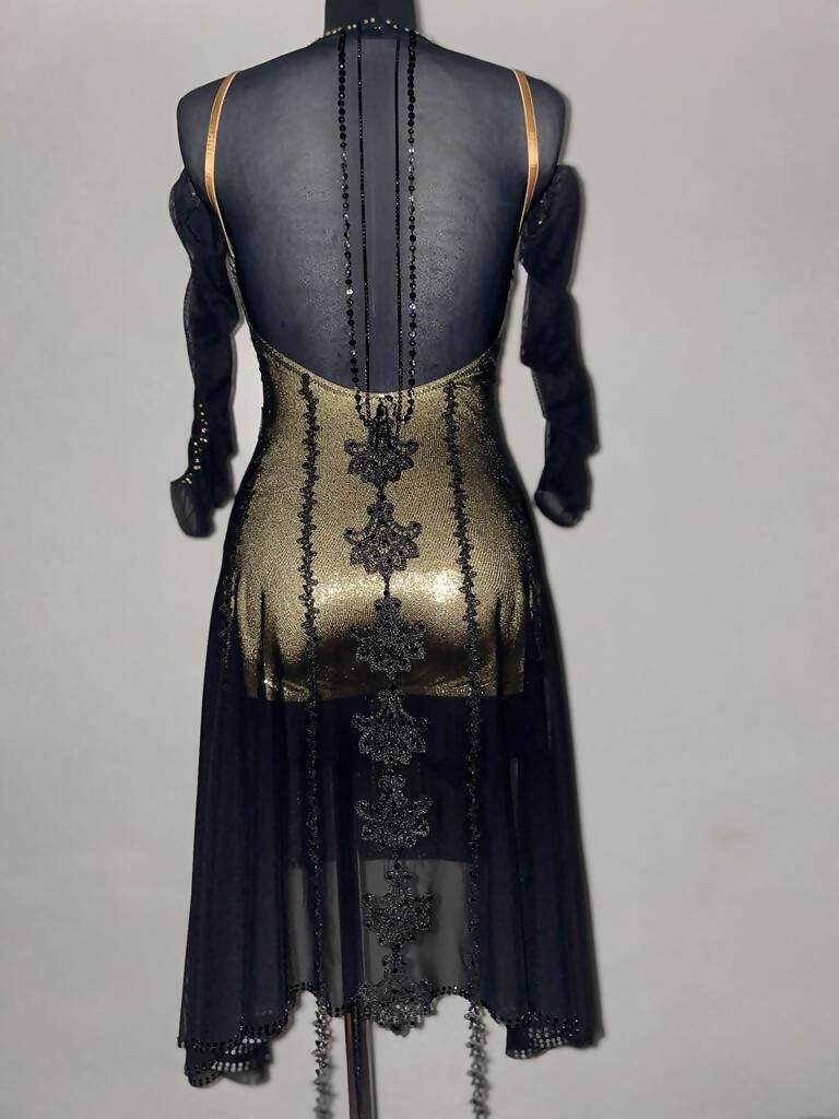 Beaded Elegance Black & Gold Latin Dress