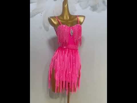 This custom latin dance dress combines technical precision with performance artistry. Flowing fringe layers respond fluidly to movement, while strategically positioned rhinestones deliver controlled sparkle and visual impact. The expertly tailored silhouette flatters the dancer's form, and the open-back construction eliminates movement restrictions while maintaining elegant lines.