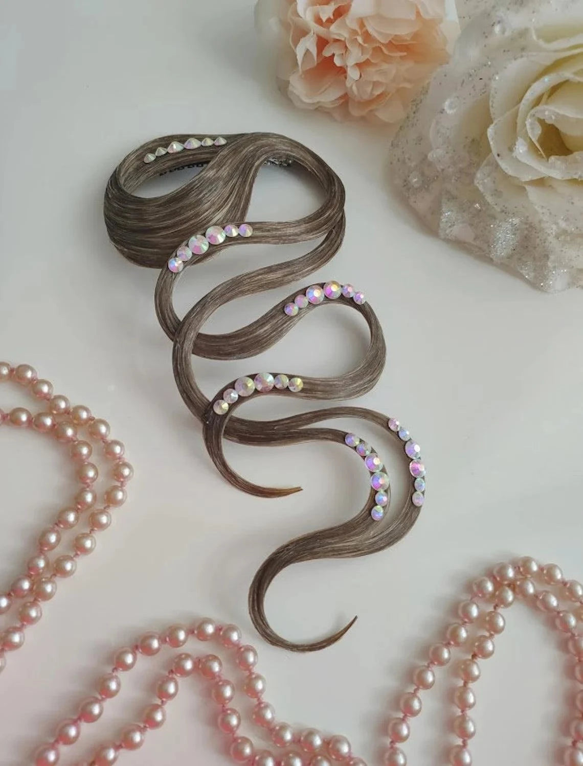 - Materials: hair, crystals, hairpins