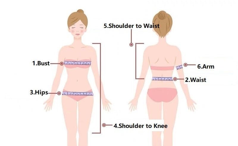 - Upon placing your order, we'll reach out for your measurements, including bust, waist, hips, shoulder to waist, shoulder to knee, arm circumference, height, weight