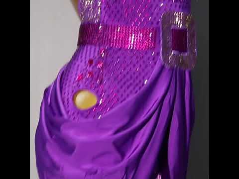 Stand out in this exclusive latin dress, beautifully decorated with sparkling crystals and lively fringes. Highlighted by a bold open back, a sparkling belt accent, and graceful draping, it embodies sophistication, movement, and a captivating presence on stage.