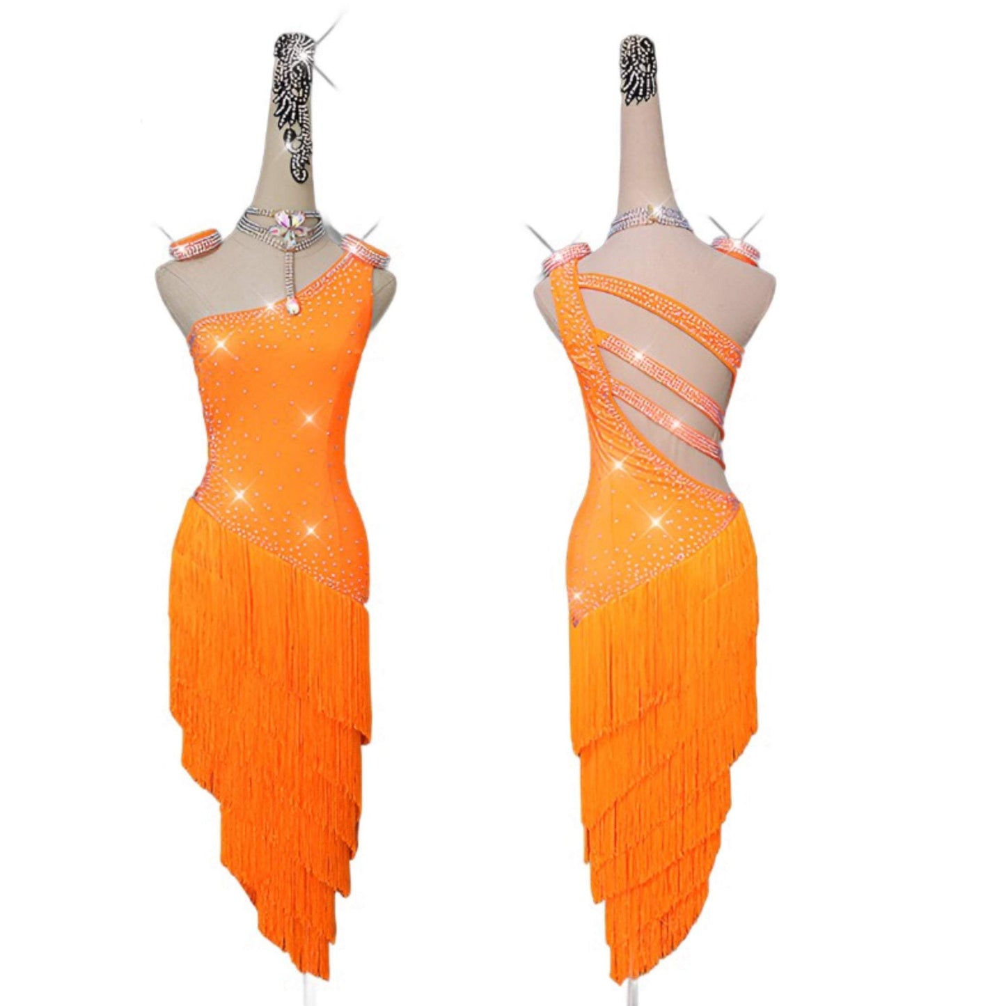 Dance with elegance in our bespoke latin dress, adorned with fringe and shimmering crystals for a touch of glamour. Meticulously crafted and competitively priced, this dance attire can be personalized in a wide array of vibrant colors. Tailored to your precise measurements for the ultimate fit, it's time to dazzle on the dance floor with our premium-quality dancewear. Find the perfect dance dress for you at our online store today!