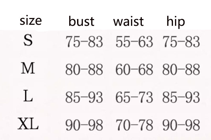 | Size | Bust | Waist | Hips |