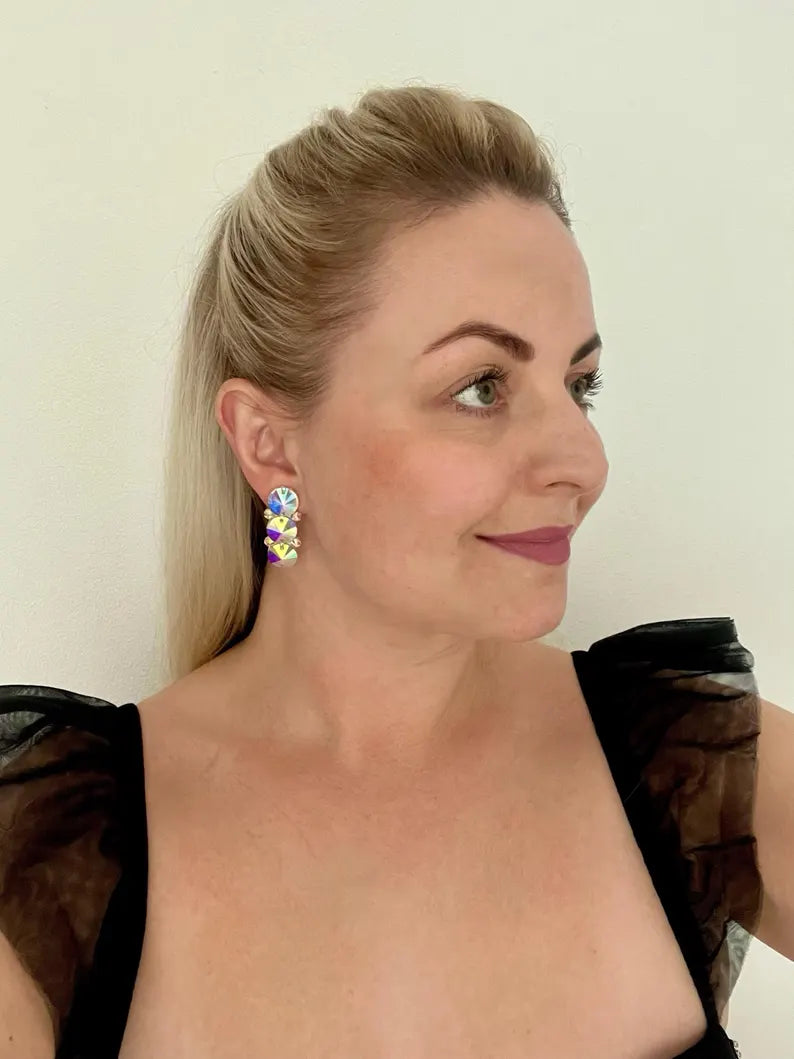 - Crafted with high-quality AB crystals, these earrings are perfect for dancers, weddings, balls, and parties.