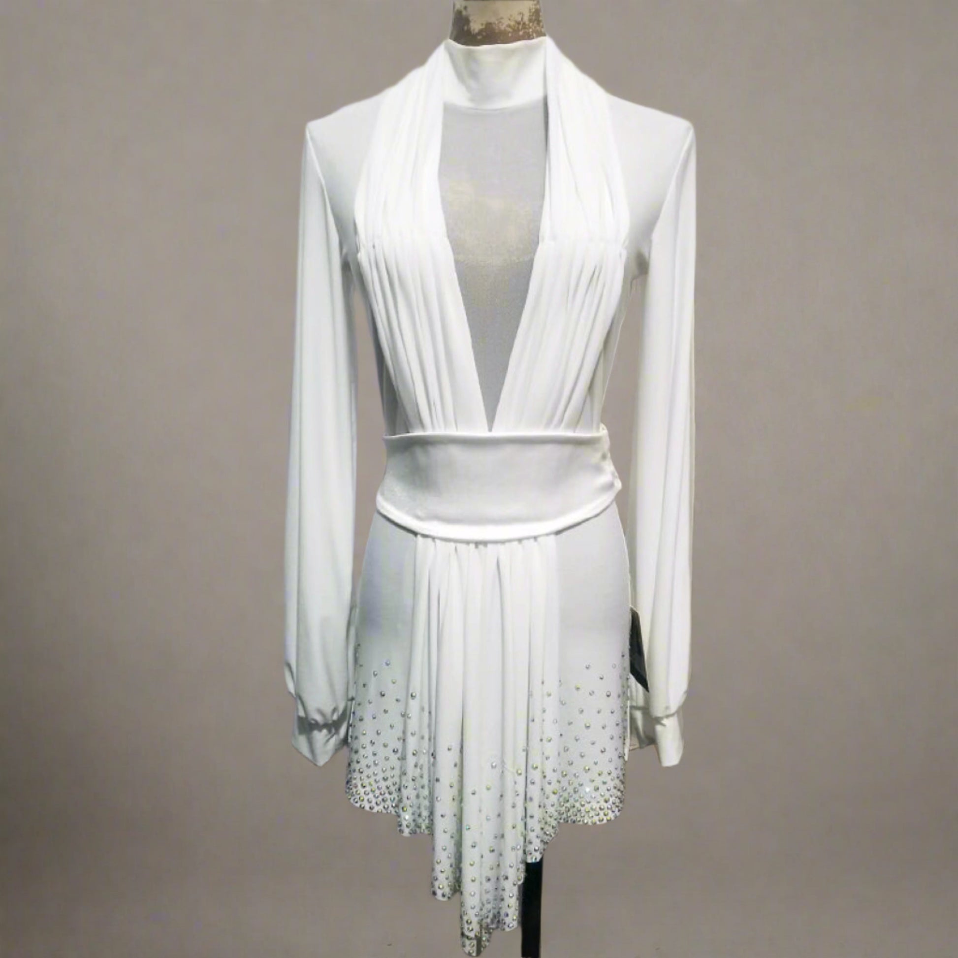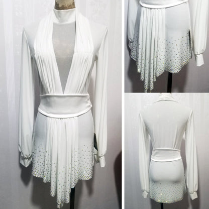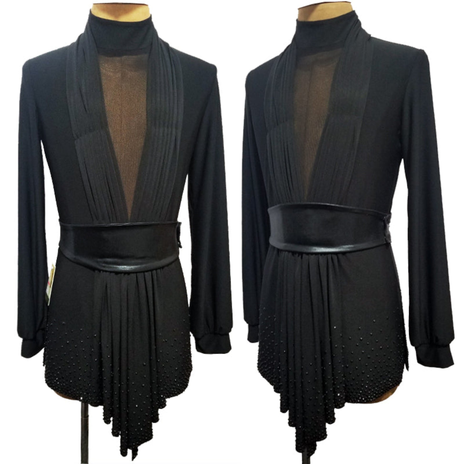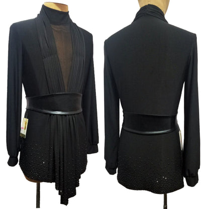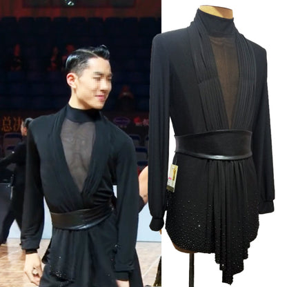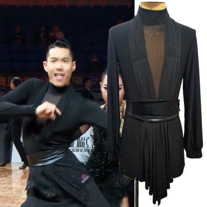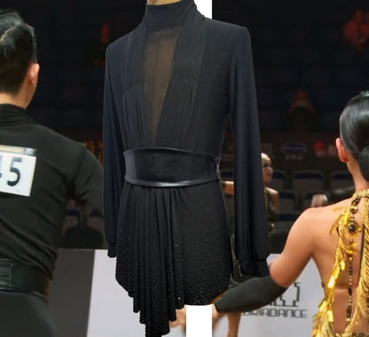 Unleash your potential with our personalized latin competition shirt! This contemporary dance top boasts a form-fitting design and dazzling stone accents on the hem, exuding grace and sophistication on the dance floor. Crafted for maximum comfort, flexibility, and captivating stage presence.