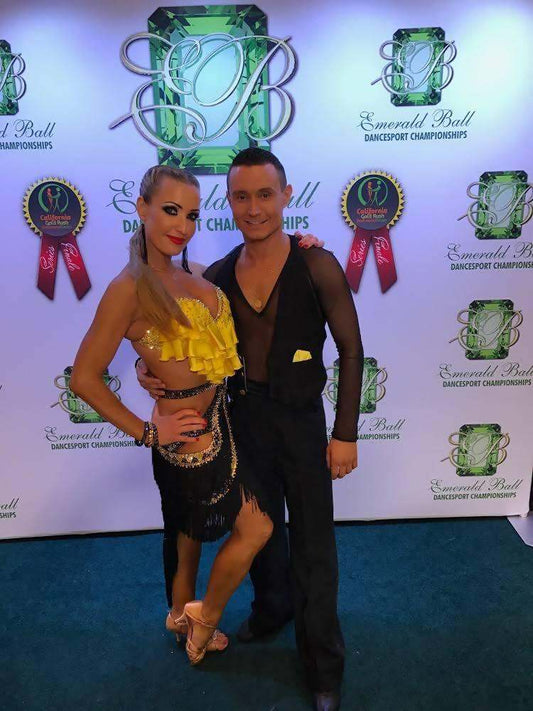 Melnikoffs Black Latin Dress with Yellow Fringe