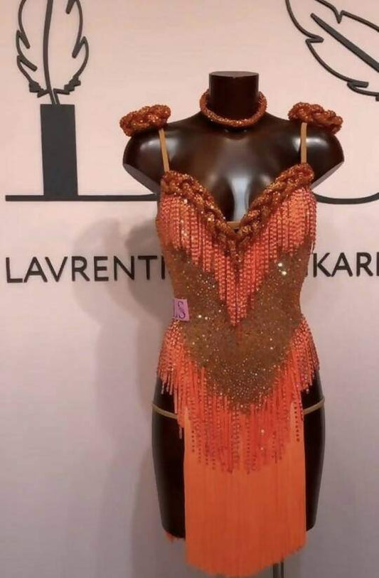 Orange Latin Dress With Swarovski Crystals