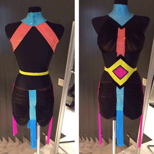 Drama in Motion: Blue & Pink Fringe Latin Dress