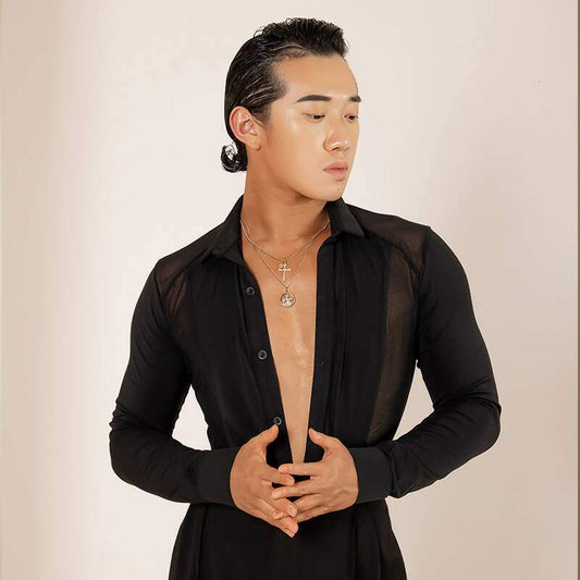 Sheer Inserts Latin Shirt | Black / White / Navy Blue | K35