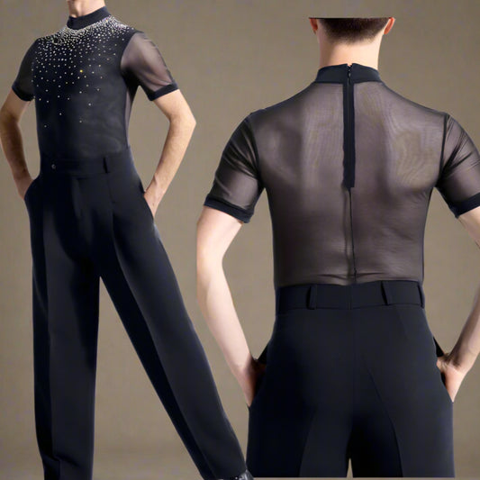 Jet-Black Mesh Dance Shirt