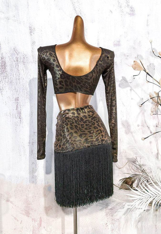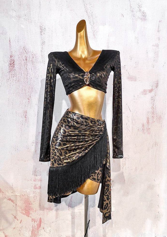 New Latin Dancewear Set - Leopard Blouse & Black Skirt | 683