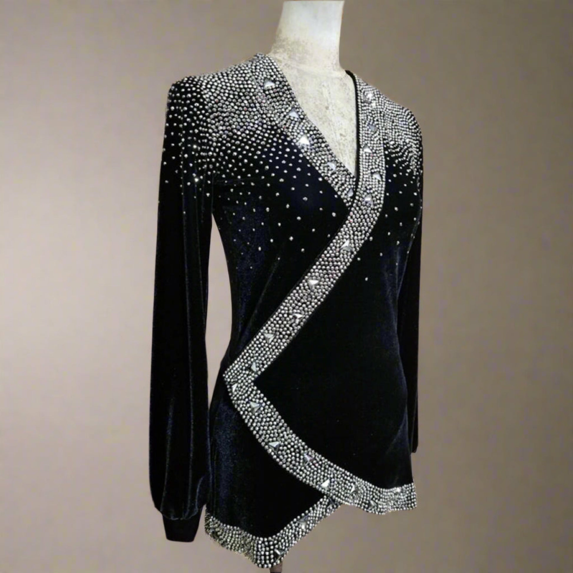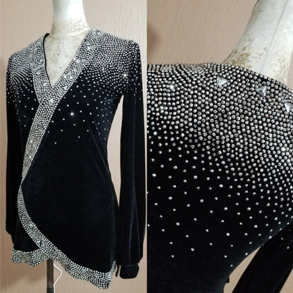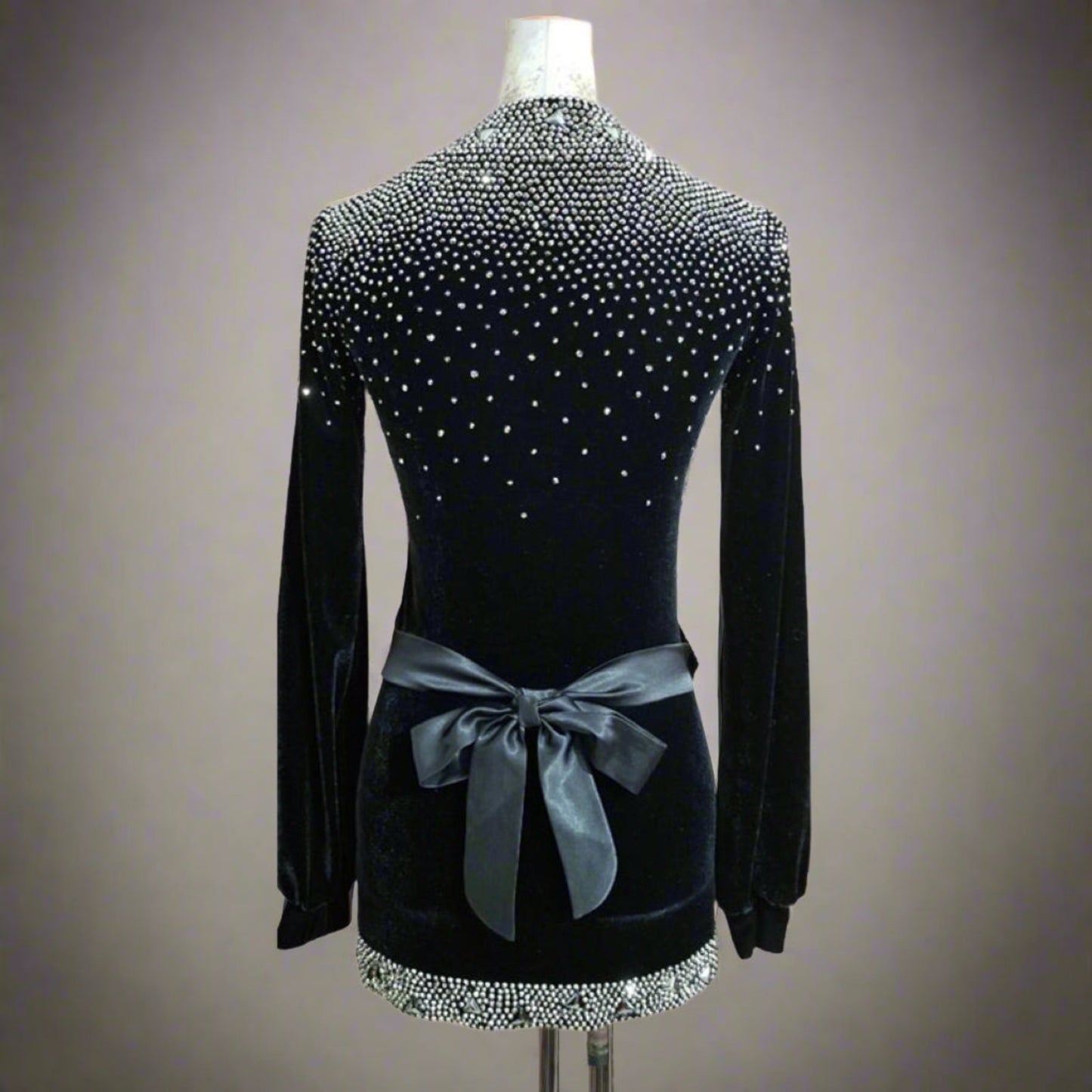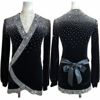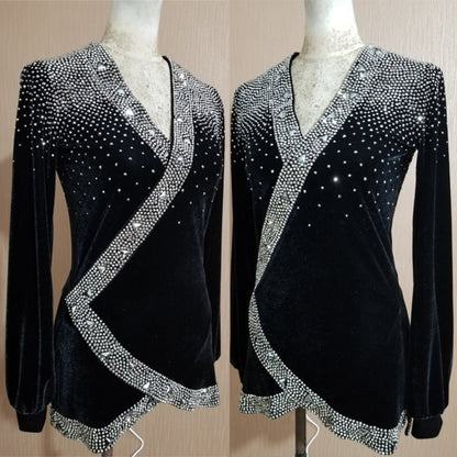 Become the star of the dance floor with our customizable stoned latin competition coat! Adorned with dazzling rhinestones, a modern long-sleeve style, and a waist-cinching drawstring, this coat combines grace, comfort, and versatility - truly a must-have for dancers who want to make a statement with style.