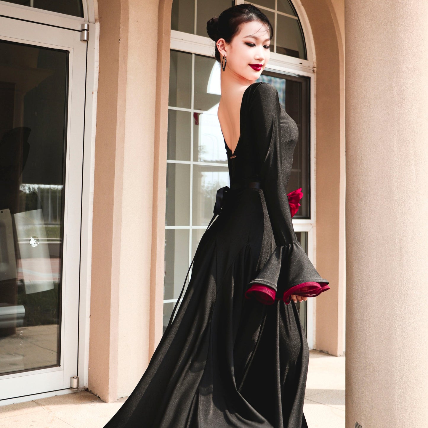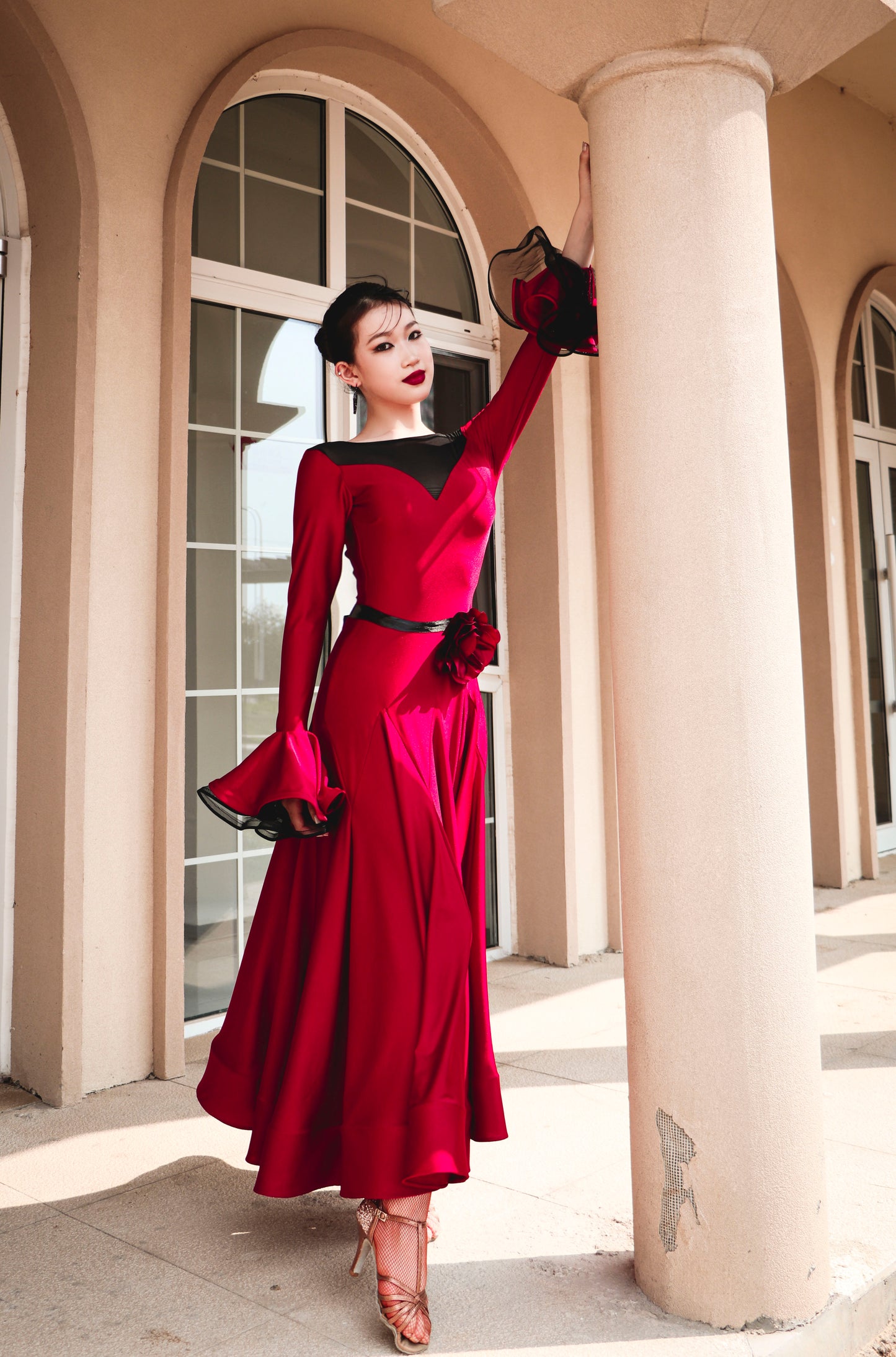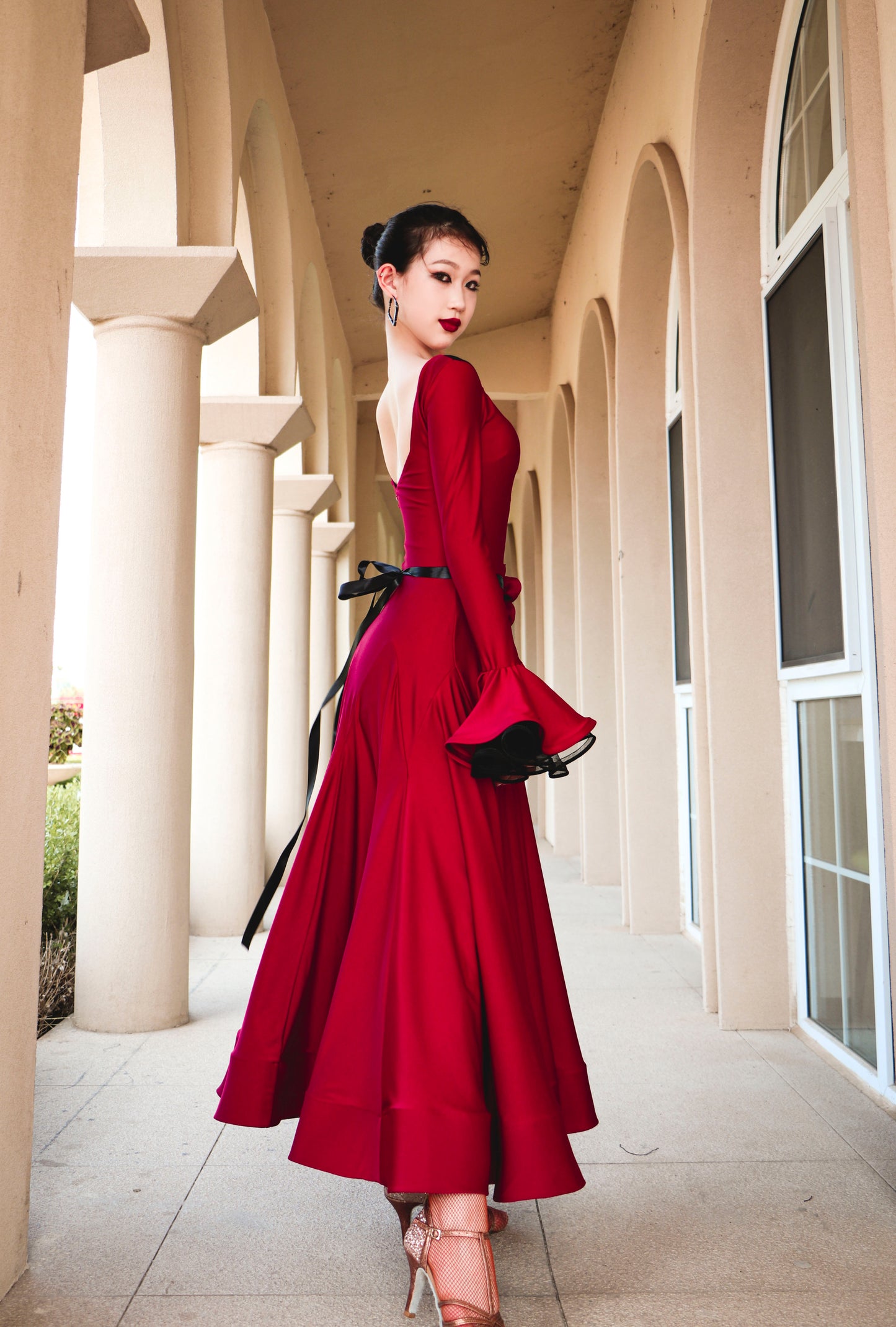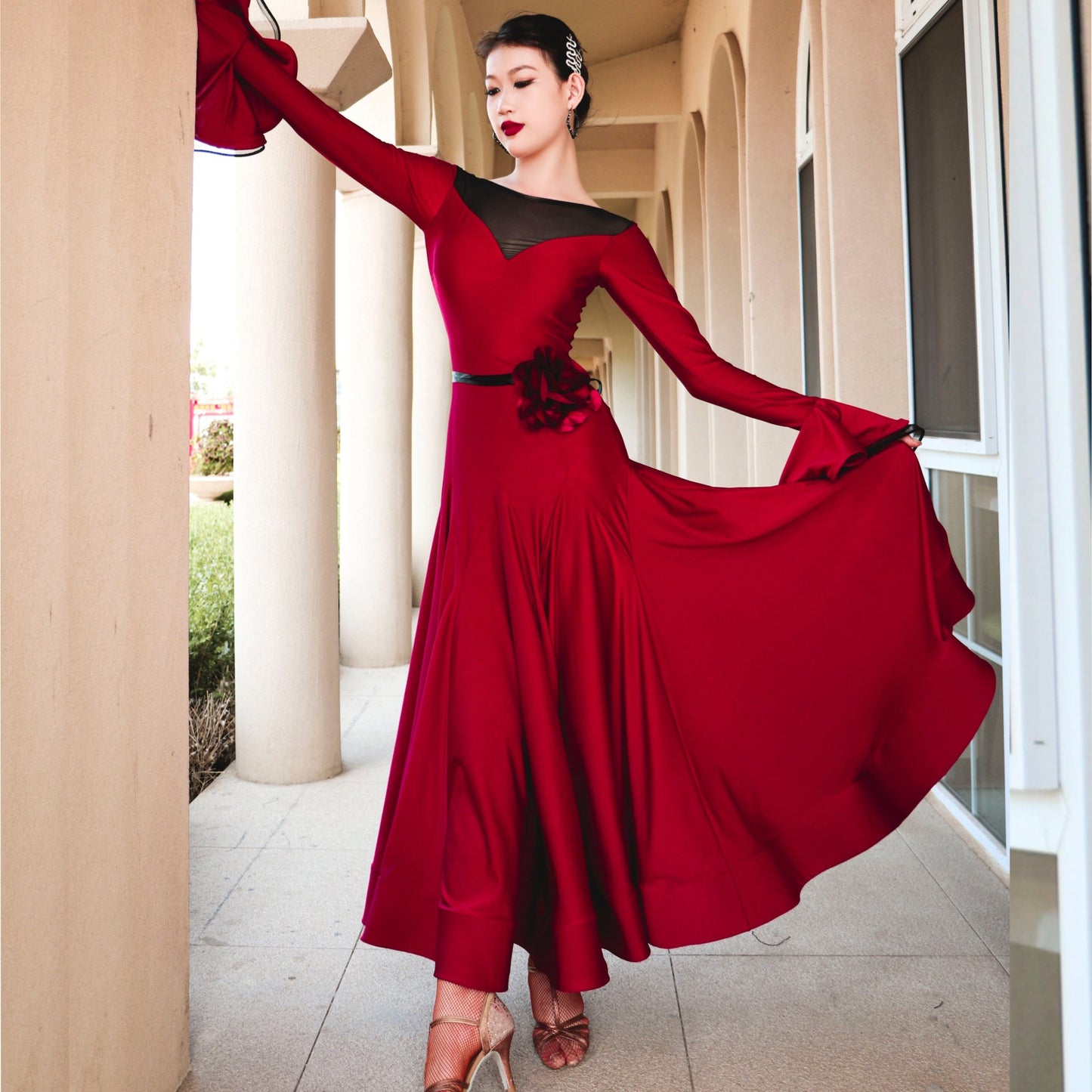 Discover elegance in motion with our new long sleeve ballroom practice dress, available in two stunning options: black with red accents and red with black accents. Adorned with crinoline detailing for enhanced fluidity, this dress is designed for comfort and style, making it the perfect choice for dancers who seek a sophisticated practice ensemble.