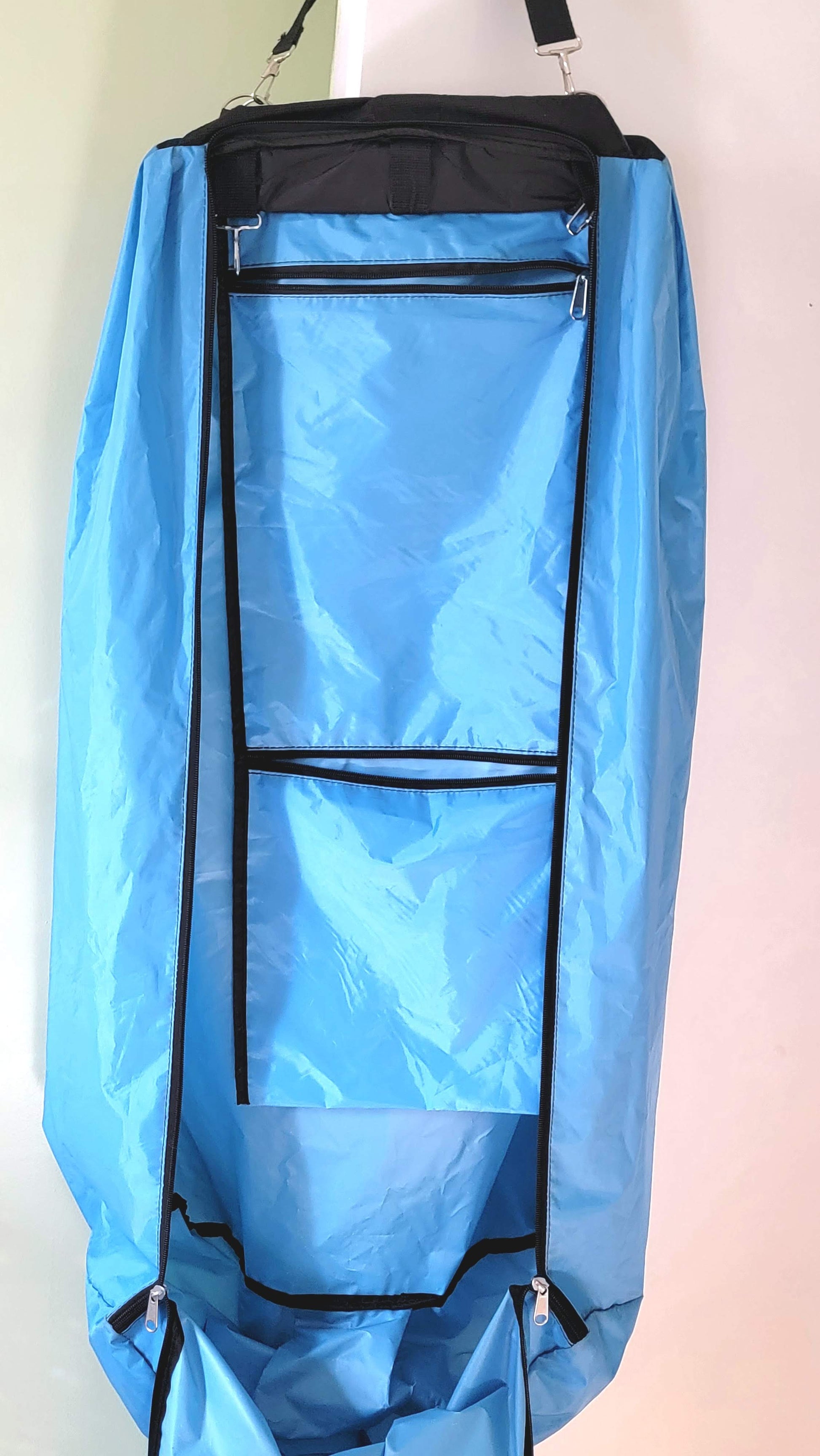 Shine on the dance floor in this ballroom dress, lavishly adorned with Swarovski crystals and hot fix rhinestones. Featuring a removable sail, flowing skirt, and elegant design, it comes in perfect condition with a protective blue bag.