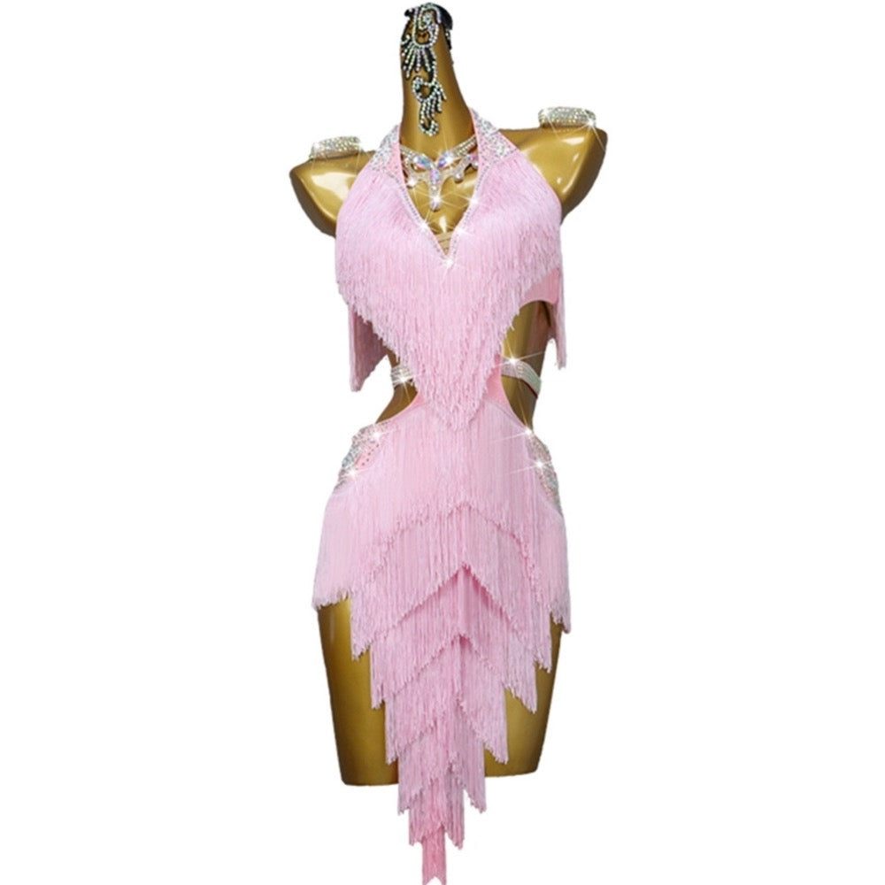 Dance with elegance in our bespoke latin dress, adorned with fringe and shimmering crystals for a touch of glamour. Meticulously crafted and competitively priced, this dance attire can be personalized in a wide array of vibrant colors. Tailored to your precise measurements for the ultimate fit, it's time to dazzle on the dance floor with our premium-quality dancewear. Find the perfect dance dress for you at our online store today!