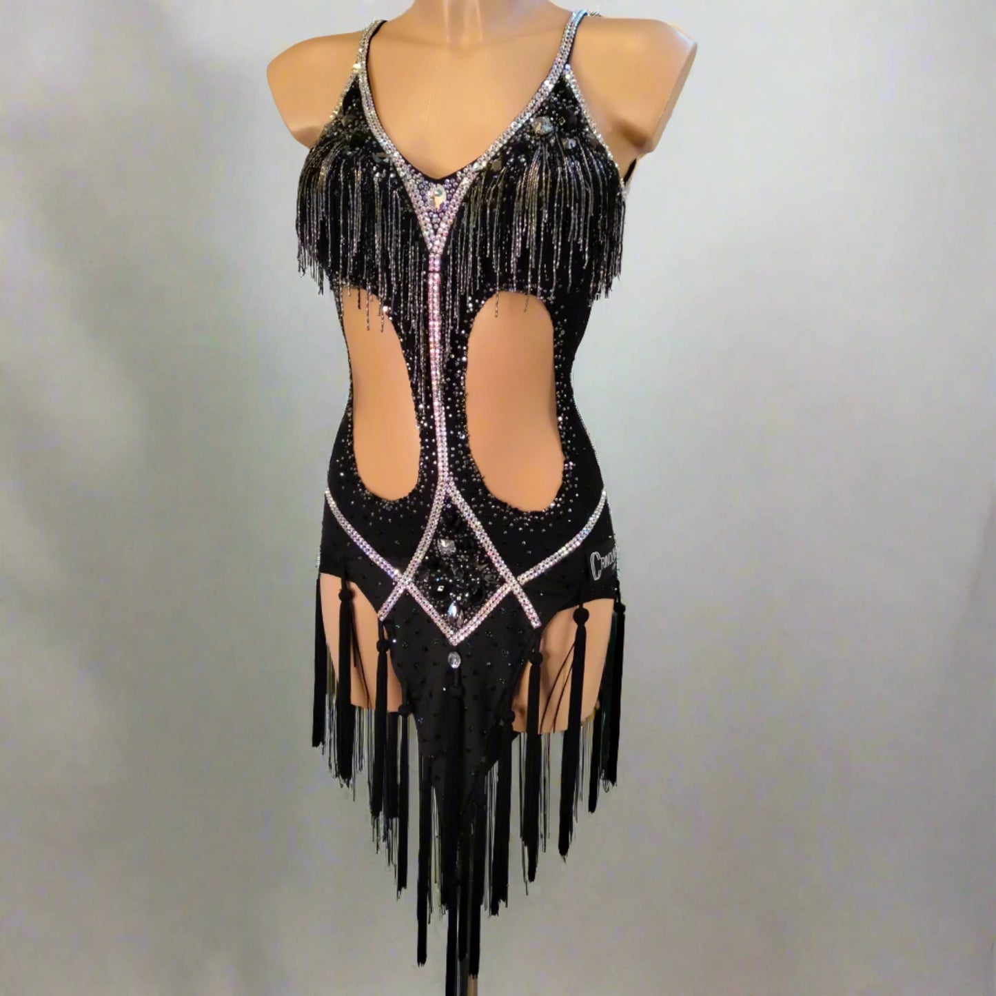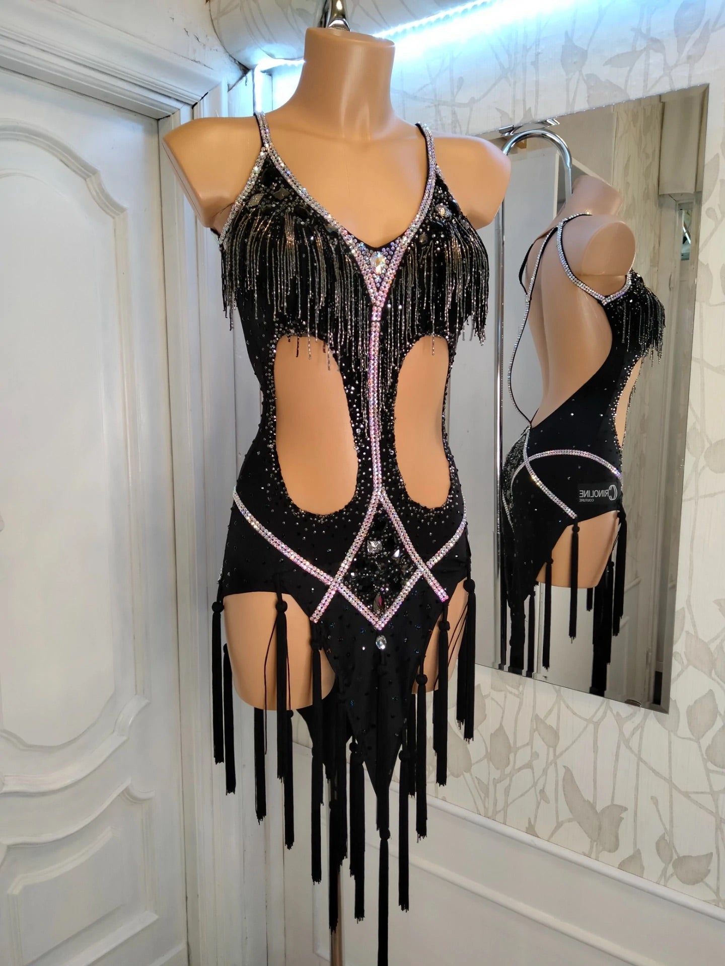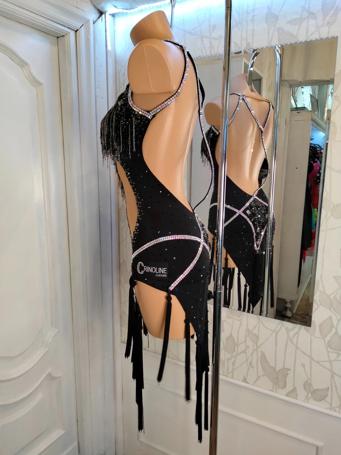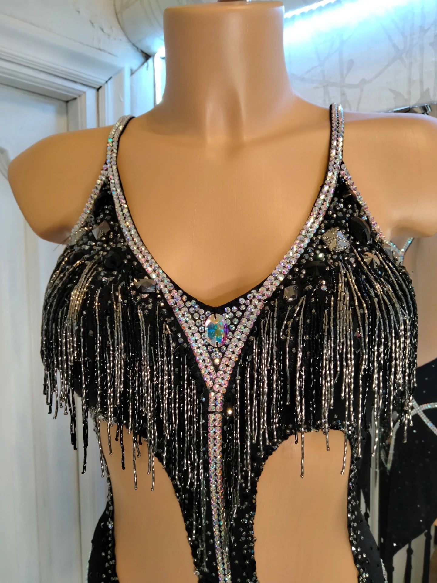 - Black, fringe, crystals, beads, professional, amateur, youth, sleeveless dress for sale