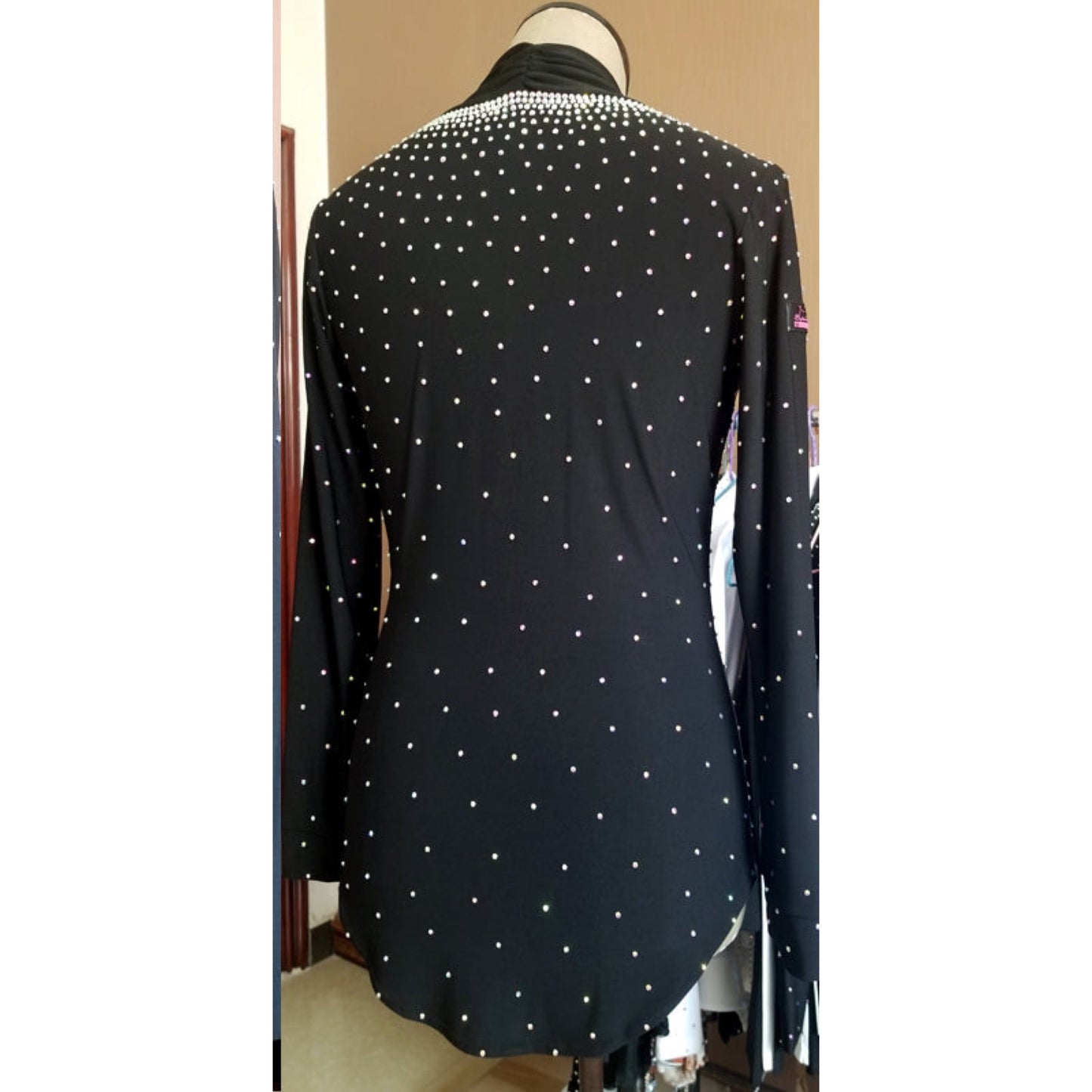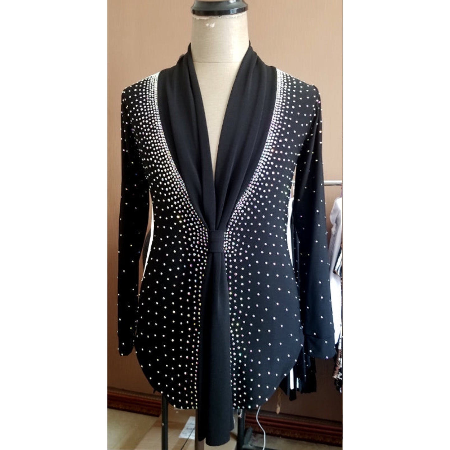 Elevate your dance game with our stunningly customizable latin competition coat! A fully stoned, long-sleeve, V-neck design that exudes elegance, sparkle, and unbeatable comfort for your performance. It's expertly tailored for the perfect fit, allowing you to showcase your style, flexibility, and confidence with every move.
