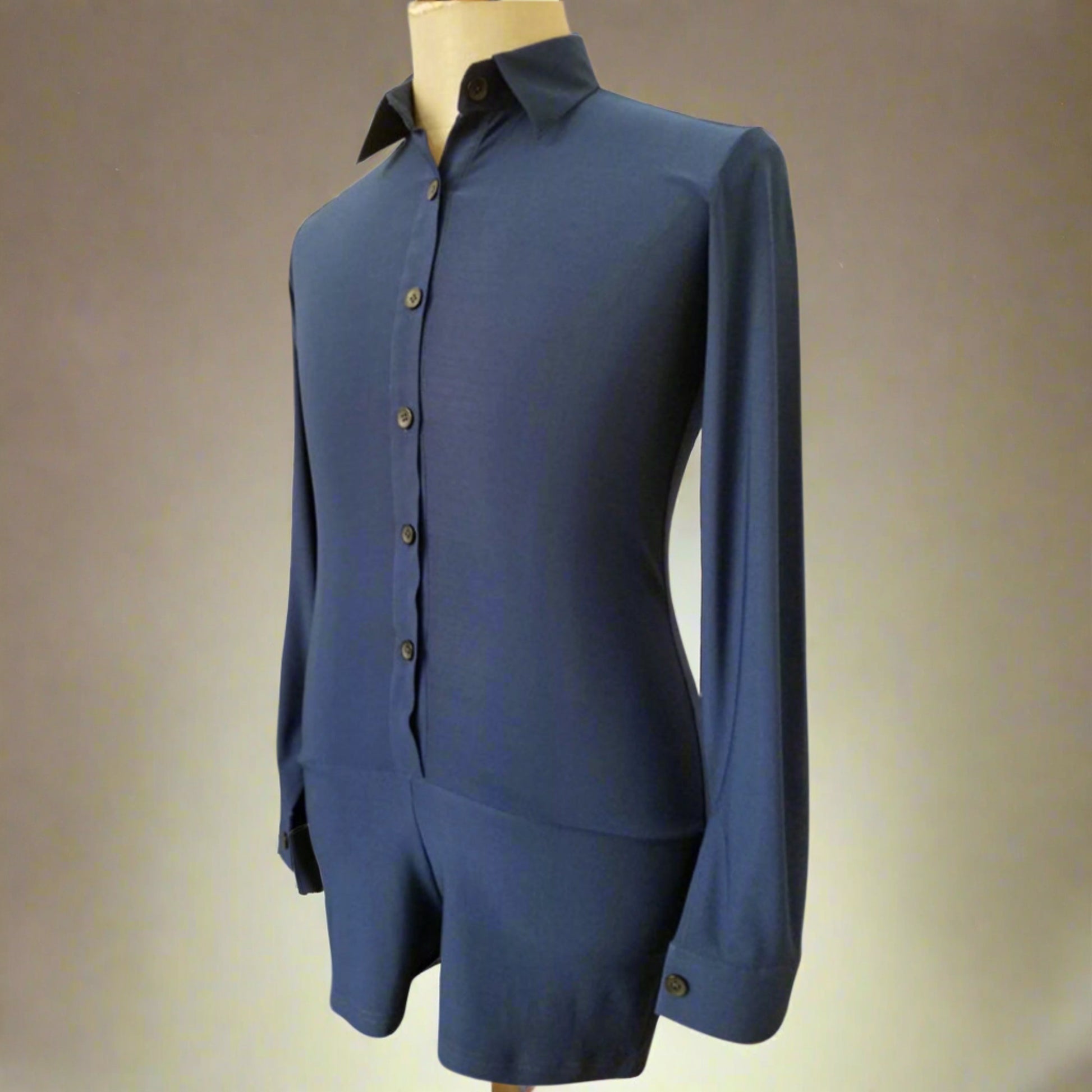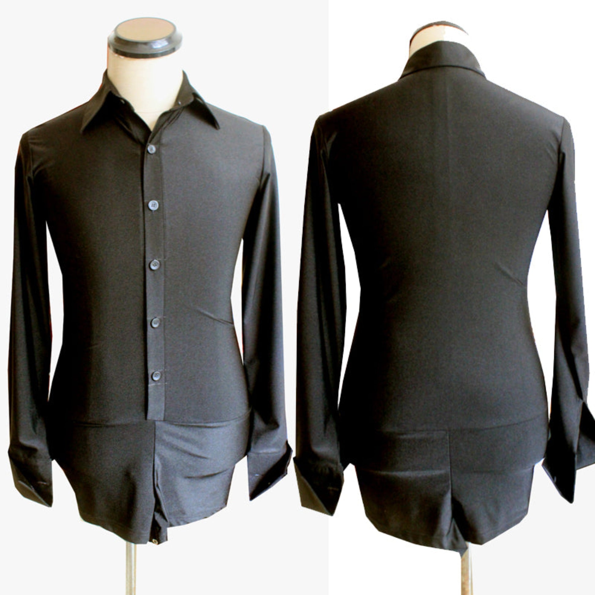 Experience the epitome of style with this exquisite tailored men’s ballroom shirt. With its timeless design and long sleeves, this shirt is perfect for any professional dancer. Embrace comfort, flexibility, and sophistication with this tailored dance shirt made specifically for ballroom dance.