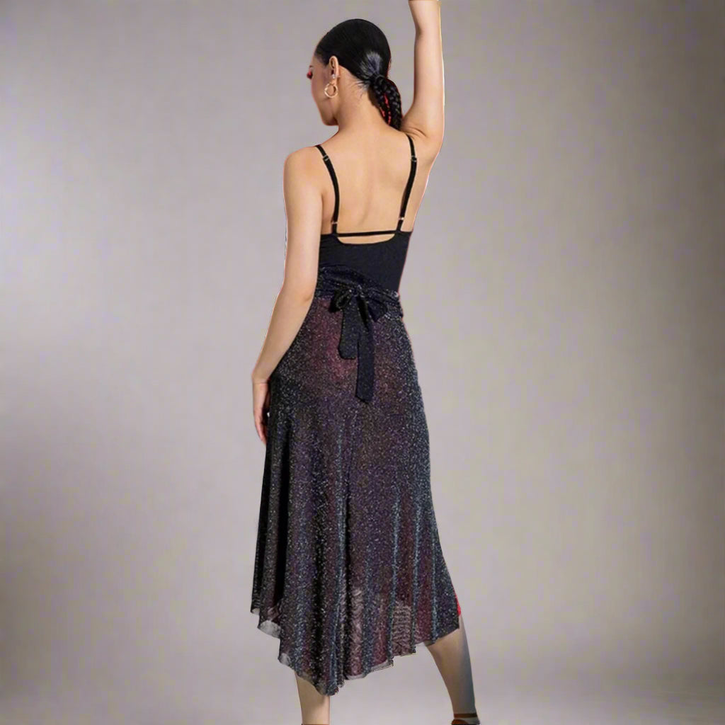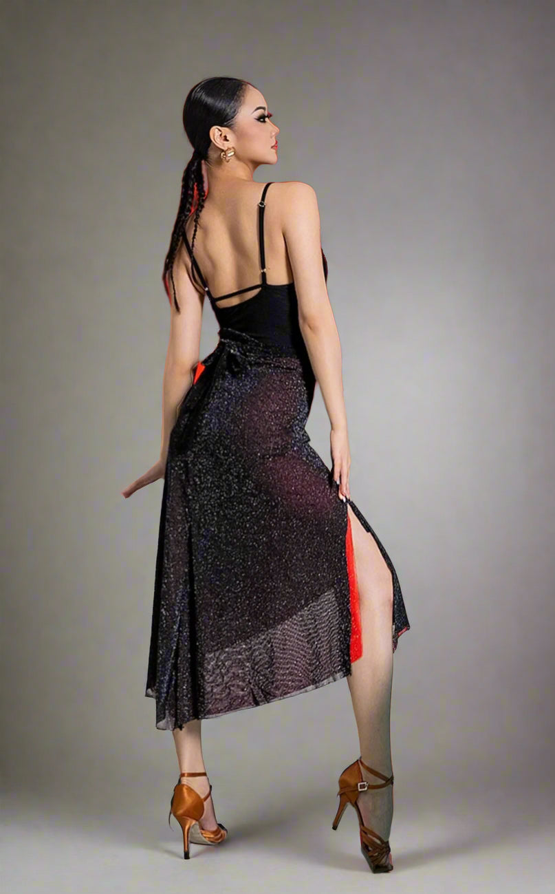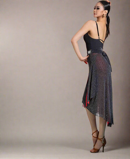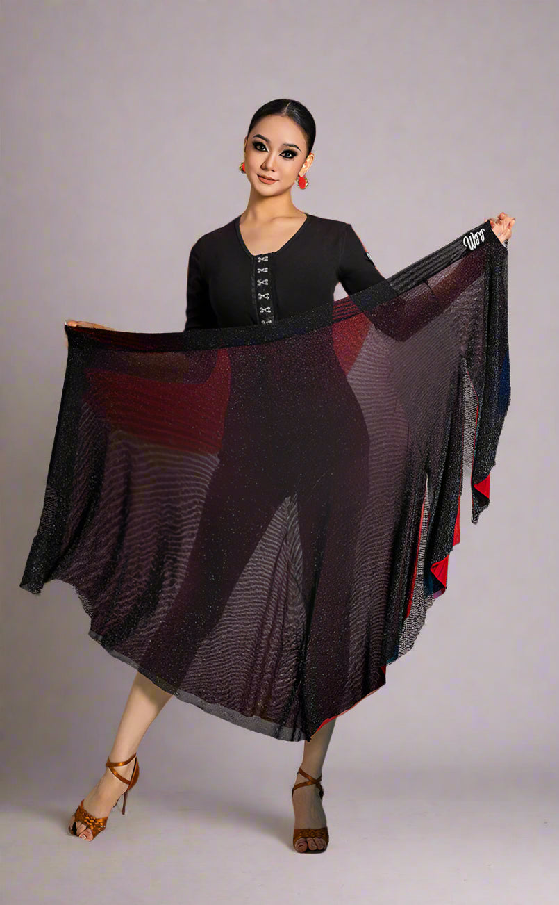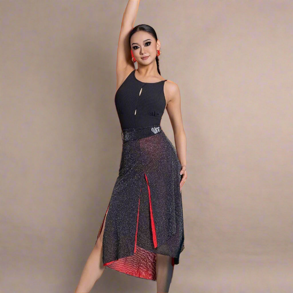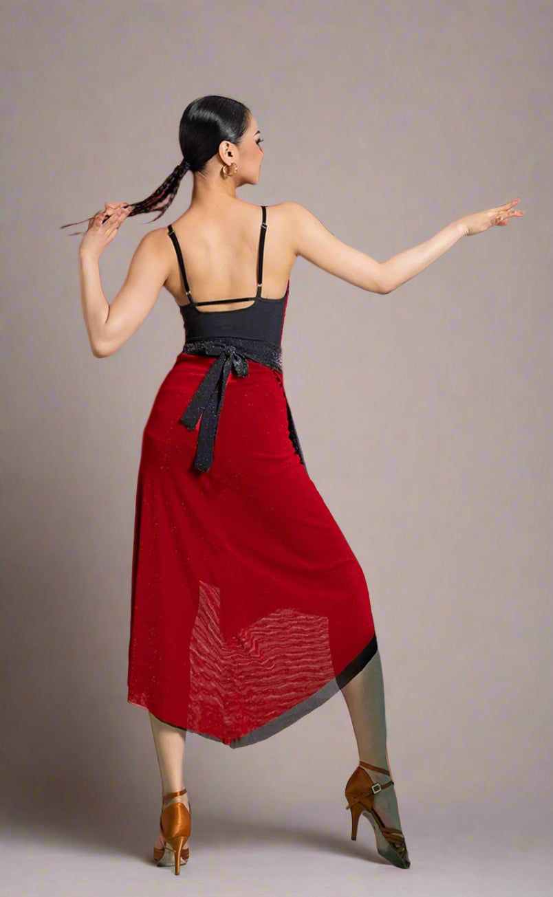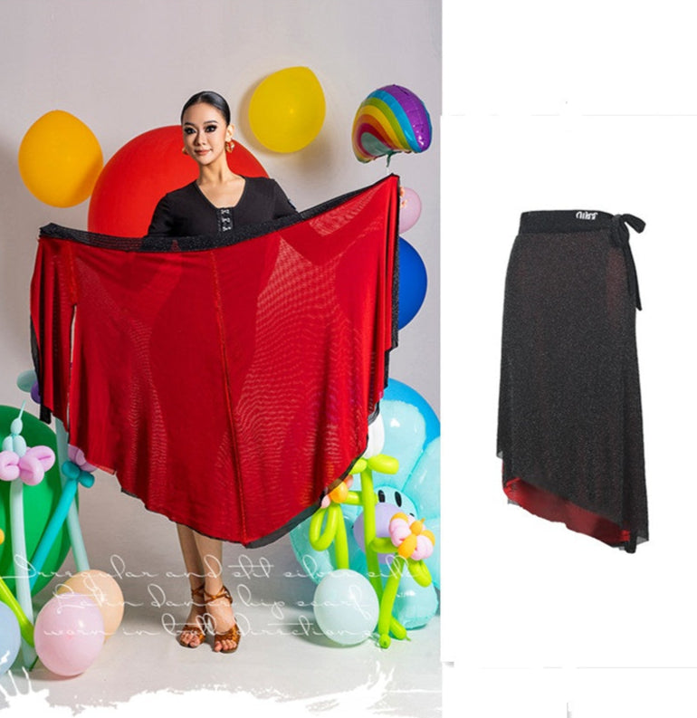 Unleash your passion with this two-sided latin practice skirt, featuring bold red on one side and classic black on the other. Designed for versatility, elegance, and effortless movement, this flowy and dynamic dance skirt allows you to switch up your style while offering graceful motion and a striking silhouette on the dance floor.